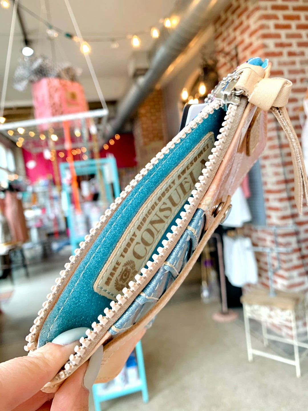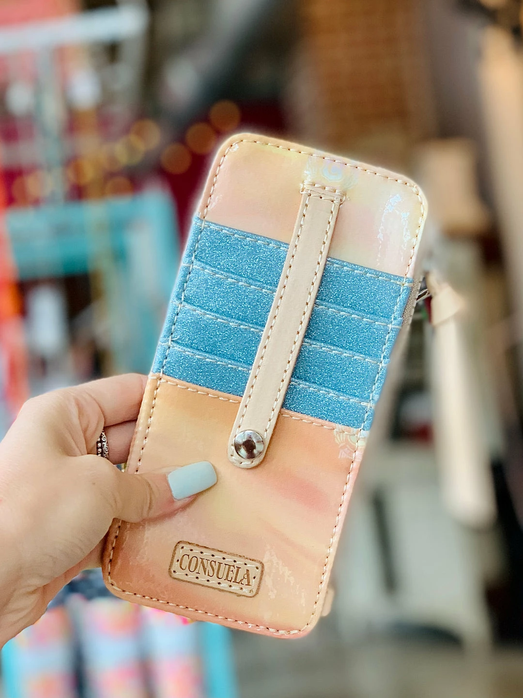 Perfect for a night out or catching a show, this card organizer makes it easy to access your cards, ID and quick cash. A mix of color and print, this card organizer features our Mona ConsuelaCloth™.