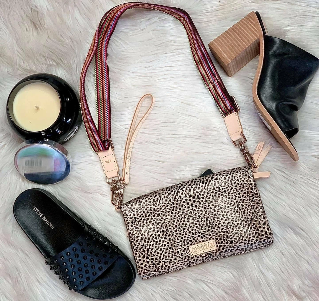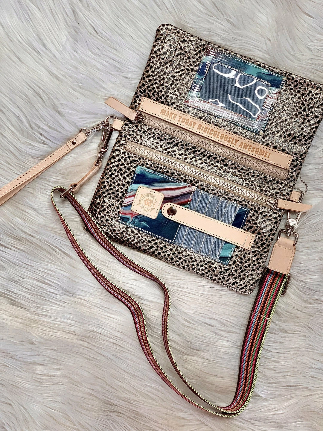 We dreamed up the best way to carry the good stuff with our new Uptown Crossbody. Here to hang in style with three zip compartments, six card holder slots, and an included wristlet strap, this crossbody can hold the necessities and more.