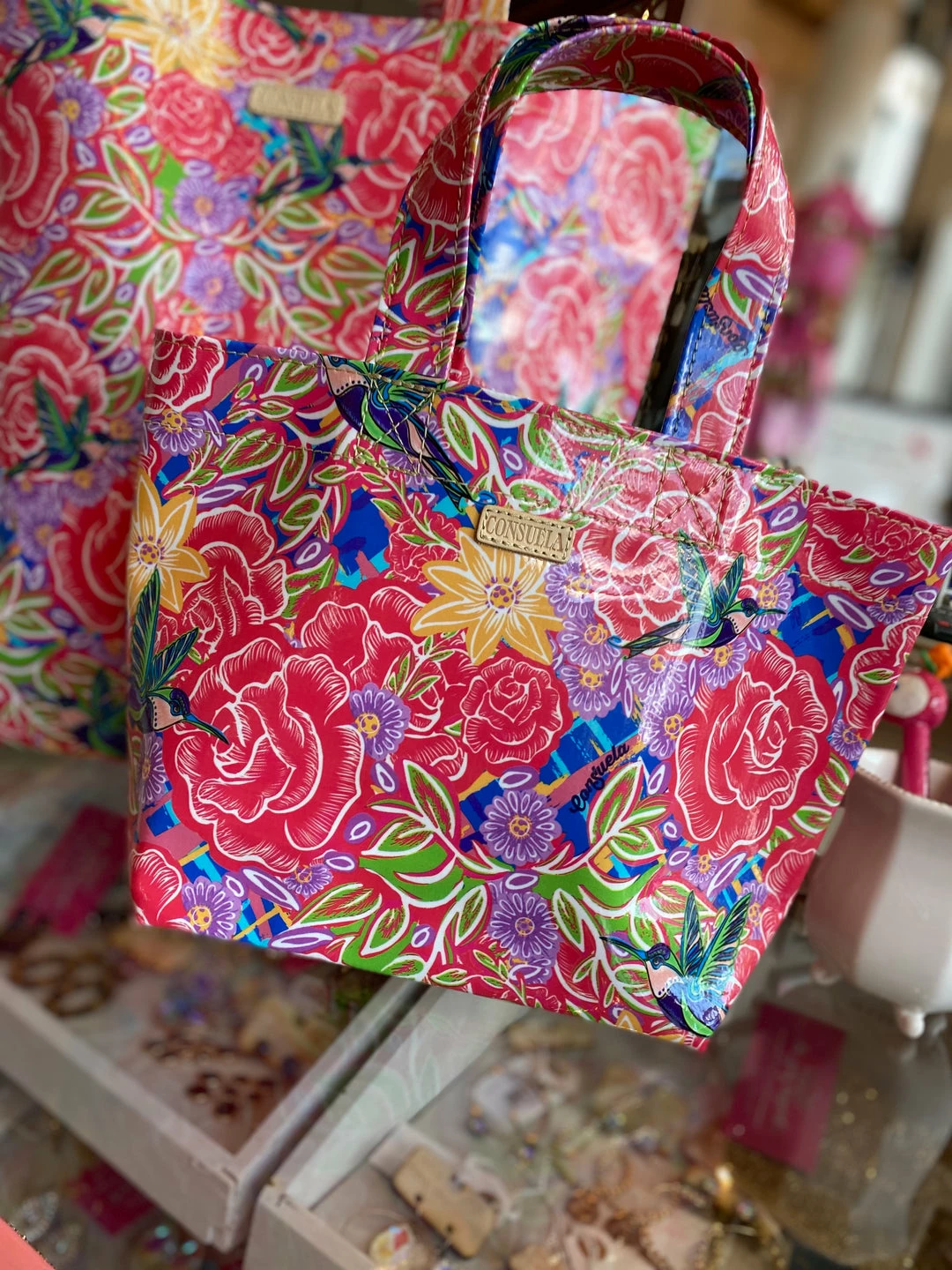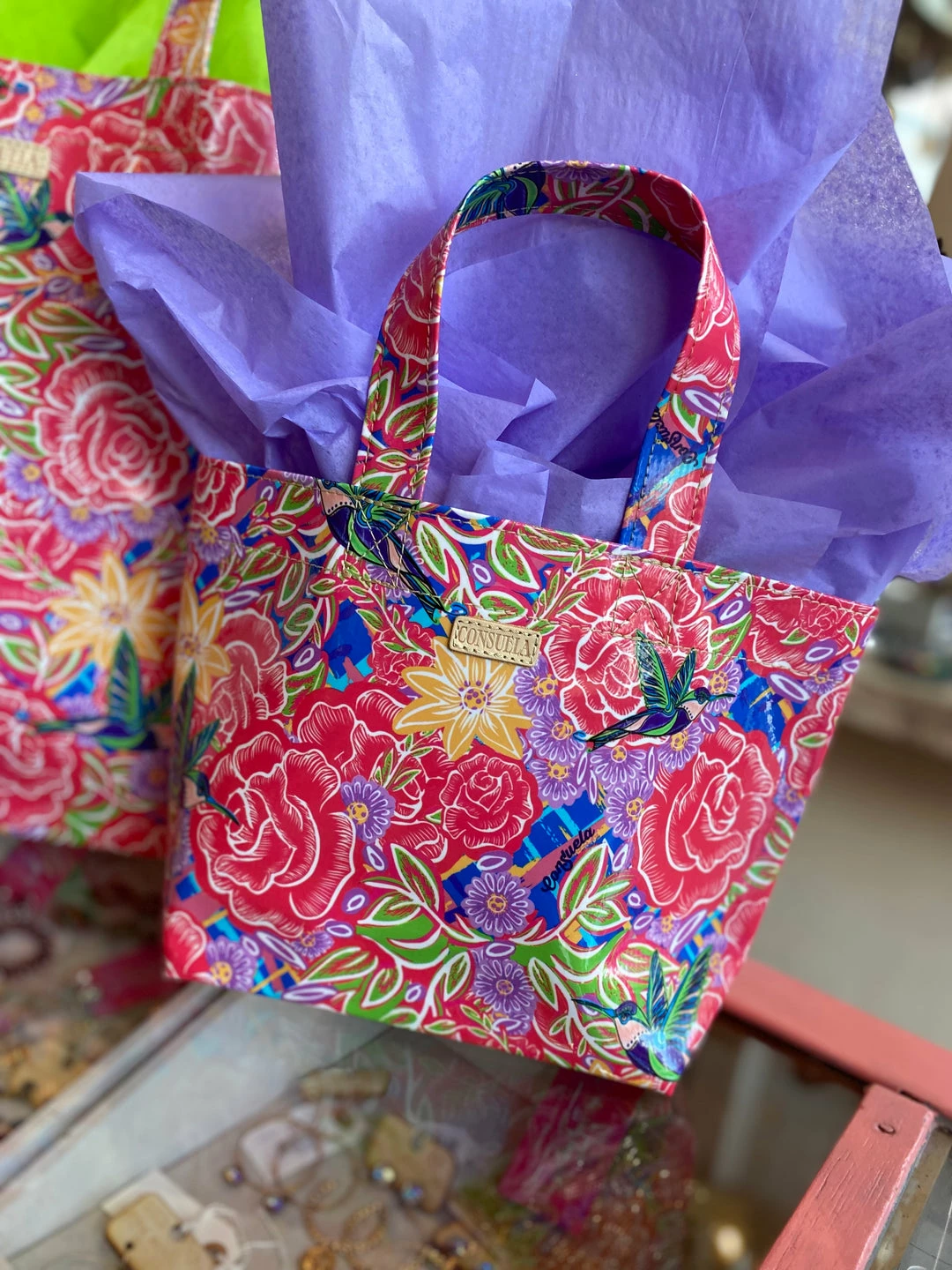 Our Mini Bag is perfect for carrying your lunch or giving gifts and folds easily to fit inside your everyday bag. This unlined utility tote in easy-to-clean ConsuelaCloth™ is the smallest of our Grab-n-Go favorites.Â