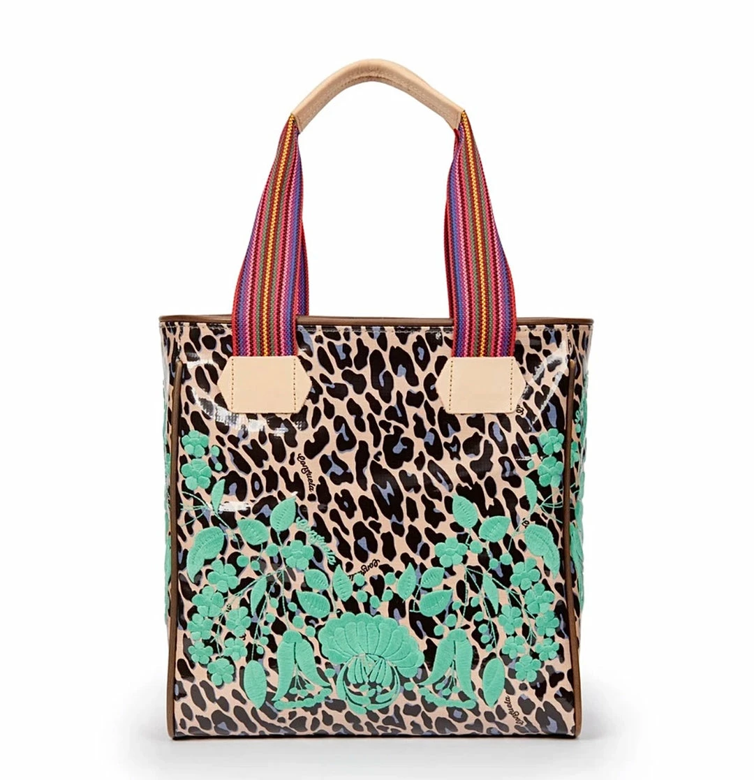 Our Bettie Classic Tote is perfect for life-on-the-go and it packs a statement in ConsuelaCloth™ with our iconic floral embroidery. Topped with comfortable woven handles, this multi-functional tote is trimmed in natural leather and crafted to hold its shape. Our tote features a roomy interior and pockets; ideal for carrying your laptop, keys, and phone.