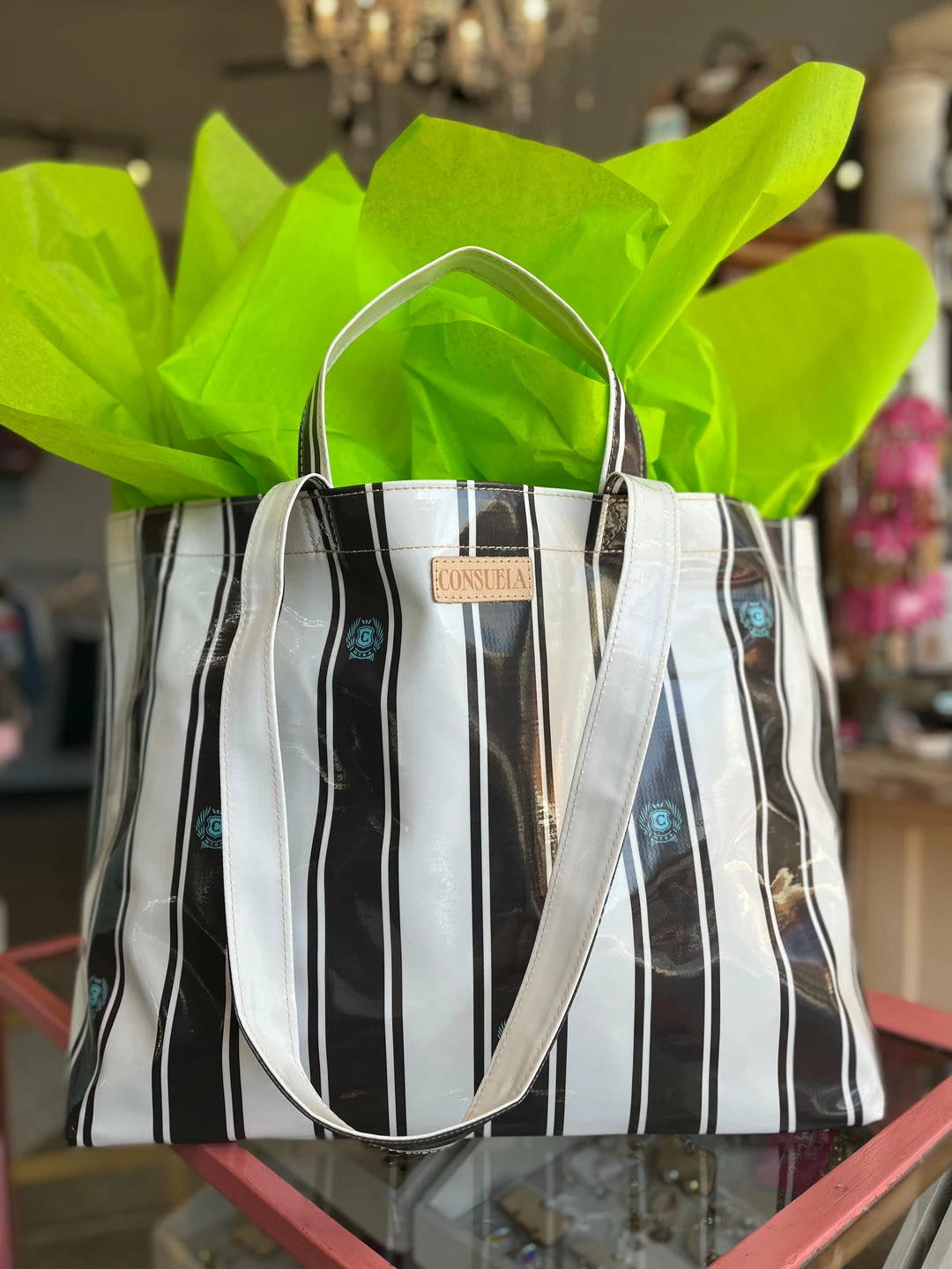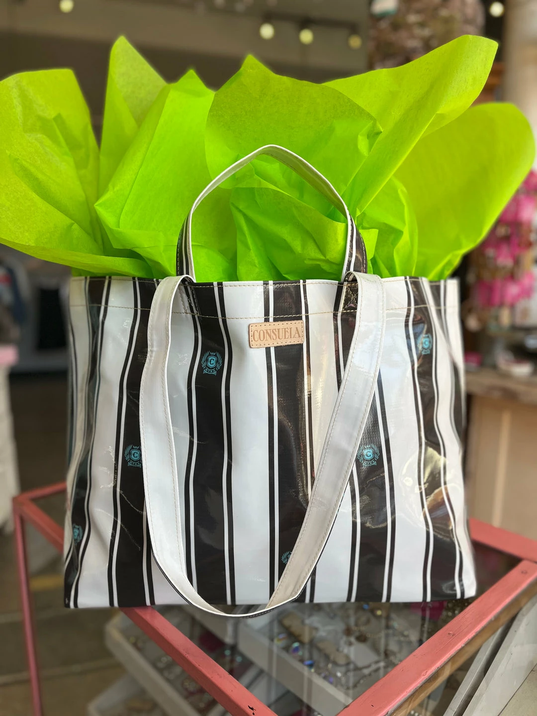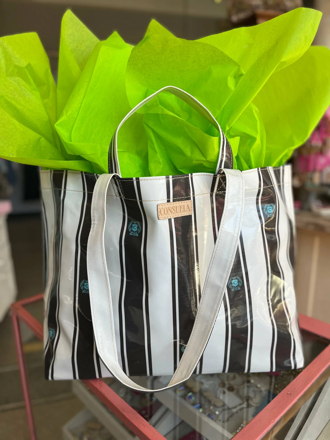 These jumbo unlined utility totes in all-over ConsuelaCloth™ hold a ton and are easily folded up for storage under your car seat or thrown in the grocery cart.