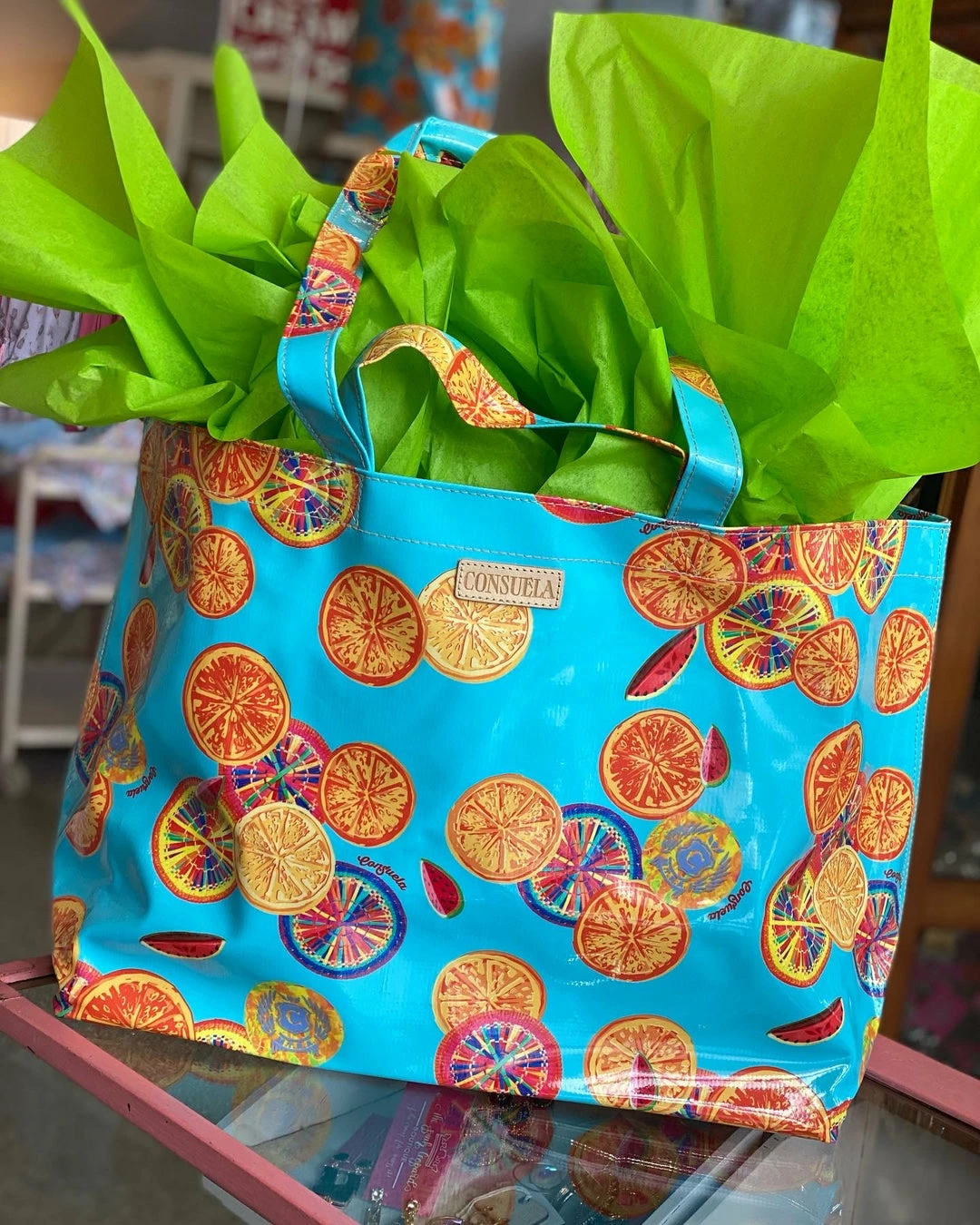 These jumbo unlined utility totes in all-over ConsuelaCloth™ hold a ton and are easily folded up for storage under your car seat or thrown in the grocery cart.