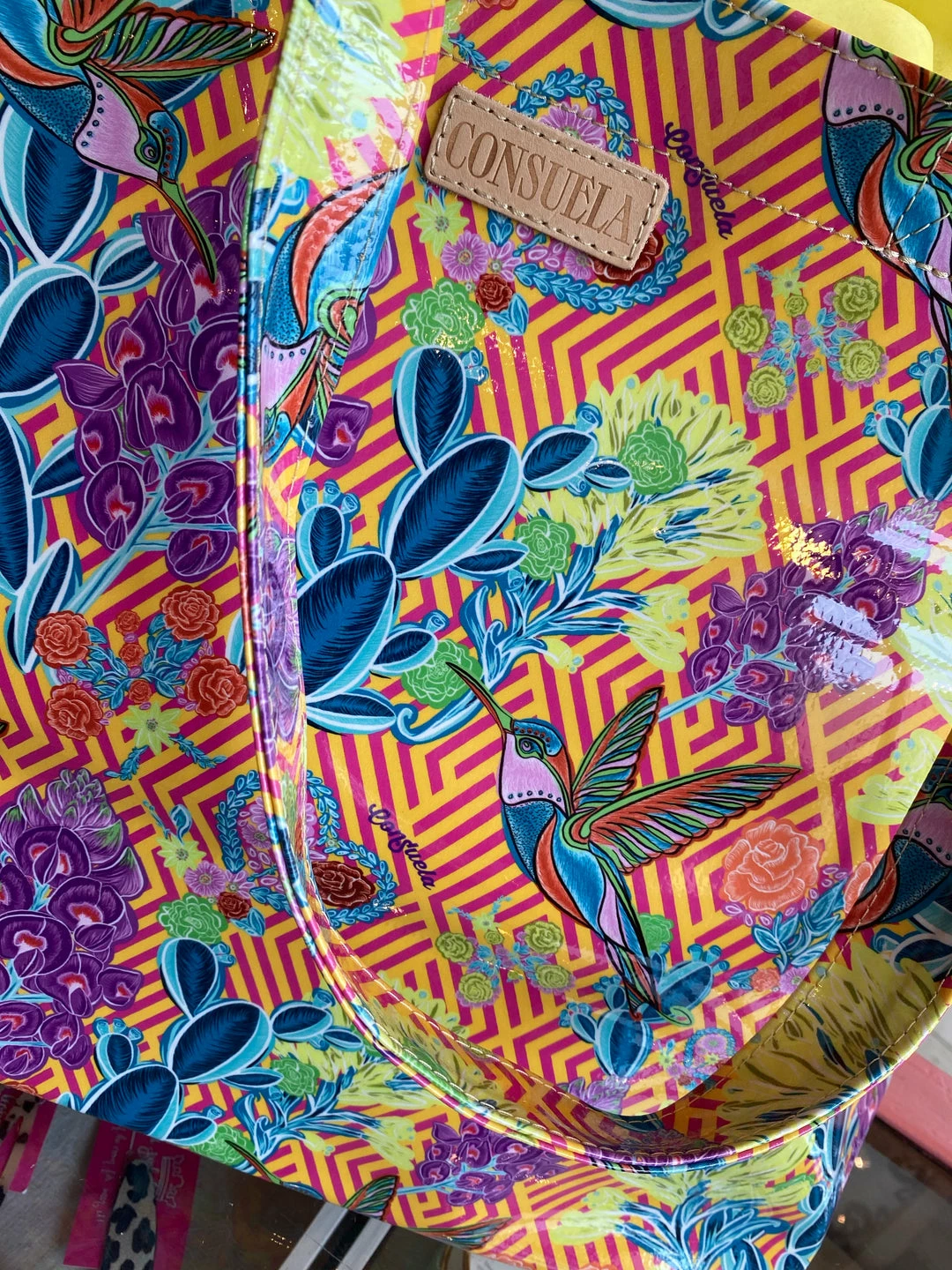 These jumbo unlined utility totes in all-over Leopard Blue Jag ConsuelaCloth™ hold a ton and are easily folded up for storage under your car seat or thrown in the grocery cart.