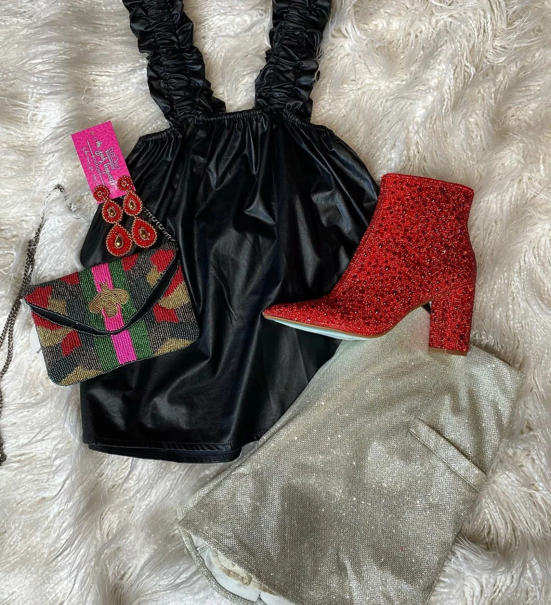Be the first to review “The Pink Leopard Leather Ruffle Tank-Black New Arrivals” Cancel reply