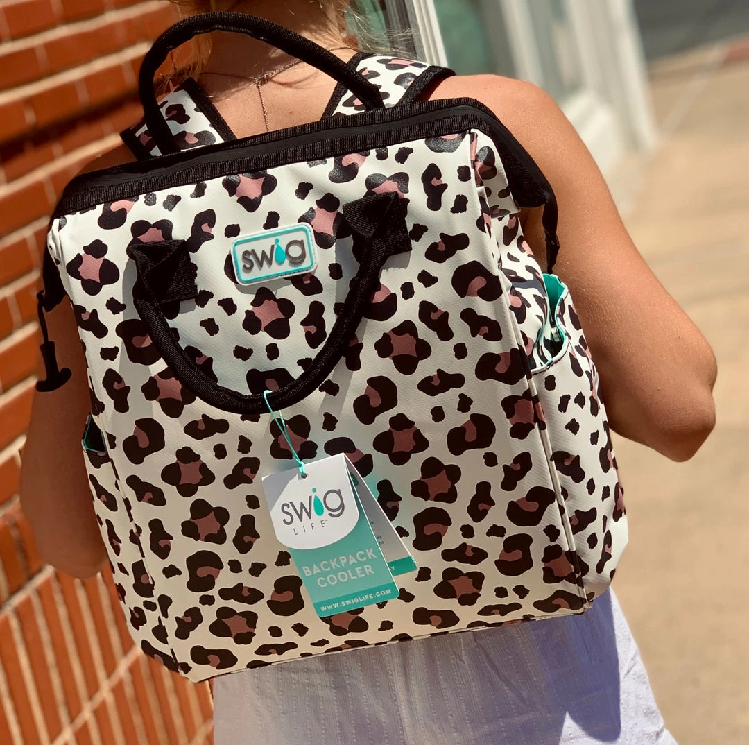 Hey, girls and guys on the go! Simply throw Swig’s new Packi Backpack Cooler over your shoulder and keep on moving. Just add ice to keep 4 gallons (16 liters) of your favorite drinks and snacks cold for hours. The unique, wireframe, zip-top construction allows the cooler to remain fully opened while being filled and used. It features two, Swig-sized side pockets with magnetic snaps, as well as a secure, waterproof zipper pocket that is perfect for storing your phone, keys, and other valuables. The Packi can be comfortably carried using the curved, padded adjustable straps or the top handles that allow for quick, grab-and-go lifting. The extra-thick, closed-cell foam lining provides two times the insulation capability, without extra weight or bulk you don’t want to carry. Best of all, the colorfully durable exterior fabric is wipeable and waterproof.