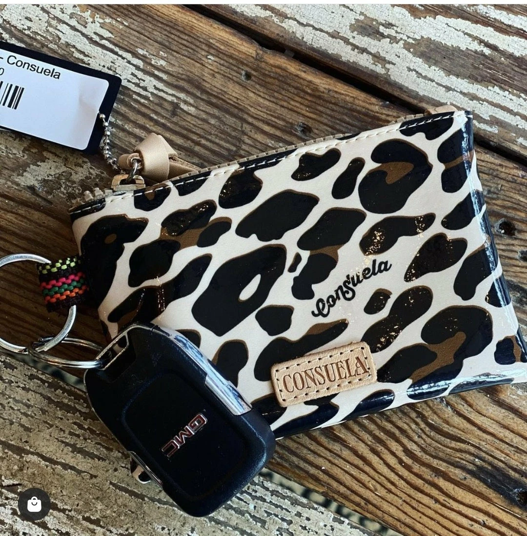 Our Mona ConsuelaCloth™ Pouch is an all-in-one, easy bag to keep your cash and keys organized on the go! The metal keyring takes you from purse to keys with ease!
