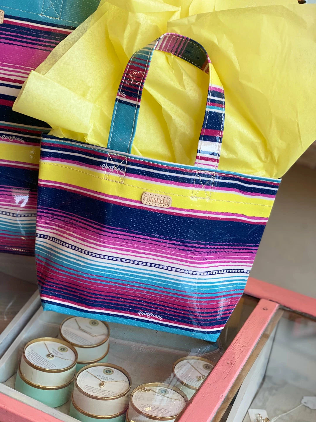 Our jewel Mini Bag is perfect for carrying your lunch or giving gifts and folds easily to fit inside your everyday bag. This unlined utility tote in easy-to-clean ConsuelaCloth™ is the smallest of our Grab-n-Go favorites.