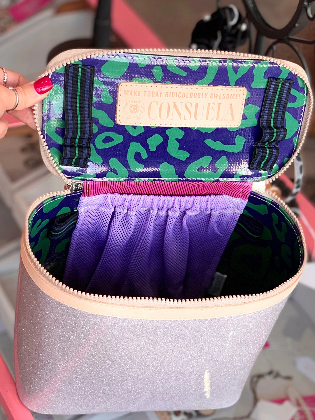 - Double-zip closure and interior mesh pocket