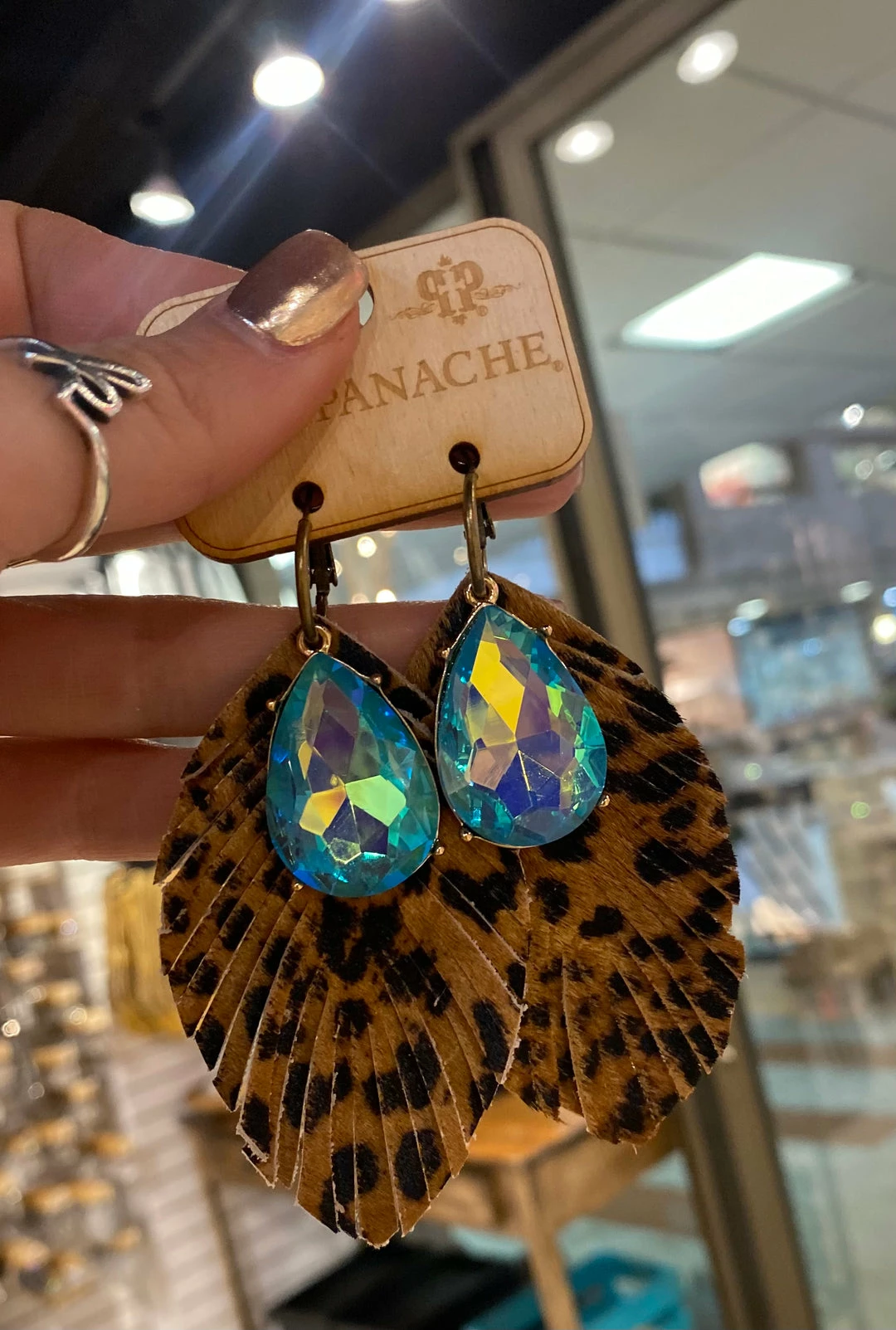 Be the first to review “The Pink Leopard Pink Panache – Leopard/Blue Stone Feather Earrings” Cancel reply