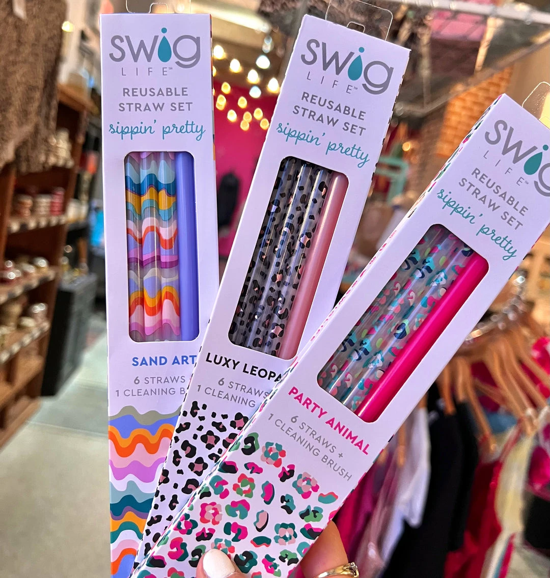 4 printed straws 2 solid color straws and 1 straw cleaning brushÂ